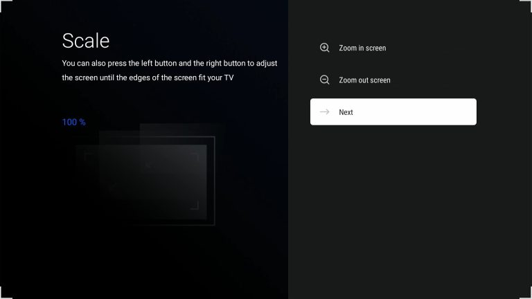 4. Adjust the screen size according to your display effect until the screen edge matches the TV, then select NEXT and press [OK] to proceed to the next step